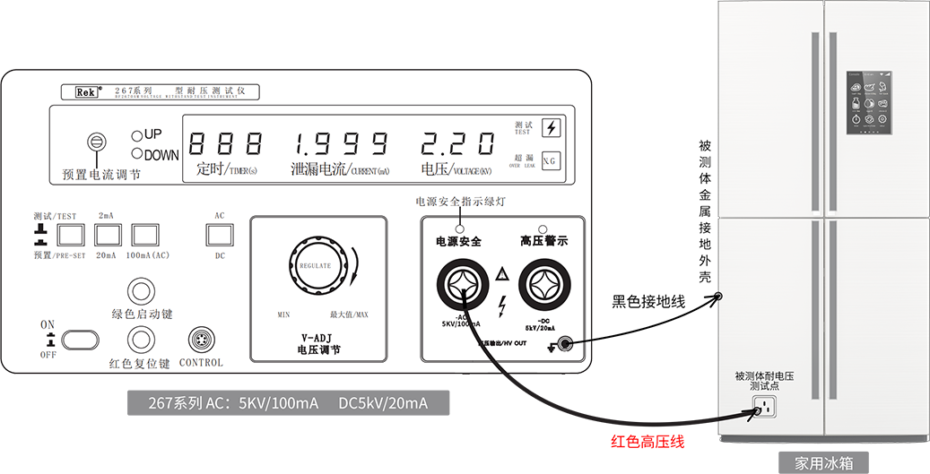 RK2672系列等型號的耐壓測試儀的輸出電壓都為5kV.擊穿電流分別為20mA, 100mA, 20mA.RK2671系列、RK2672系列為交直流兩用,