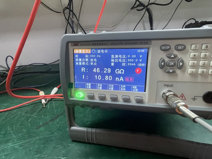 7、將被測物接入測量端,讀取絕緣電阻。